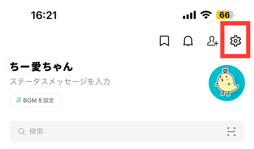 LINEを開いて右上にある「設定(歯車マーク)」をタップ