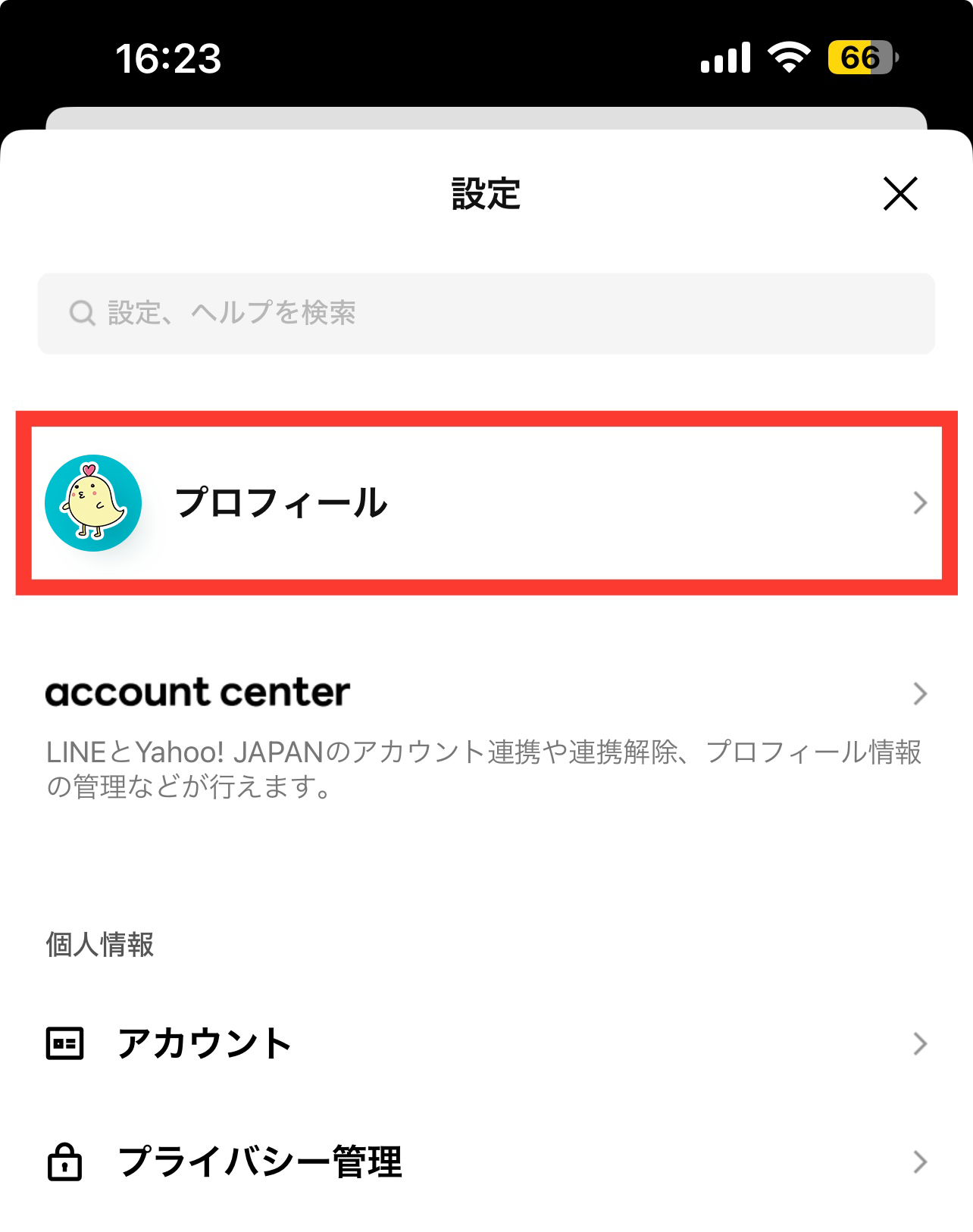 「プロフィール」をタップ