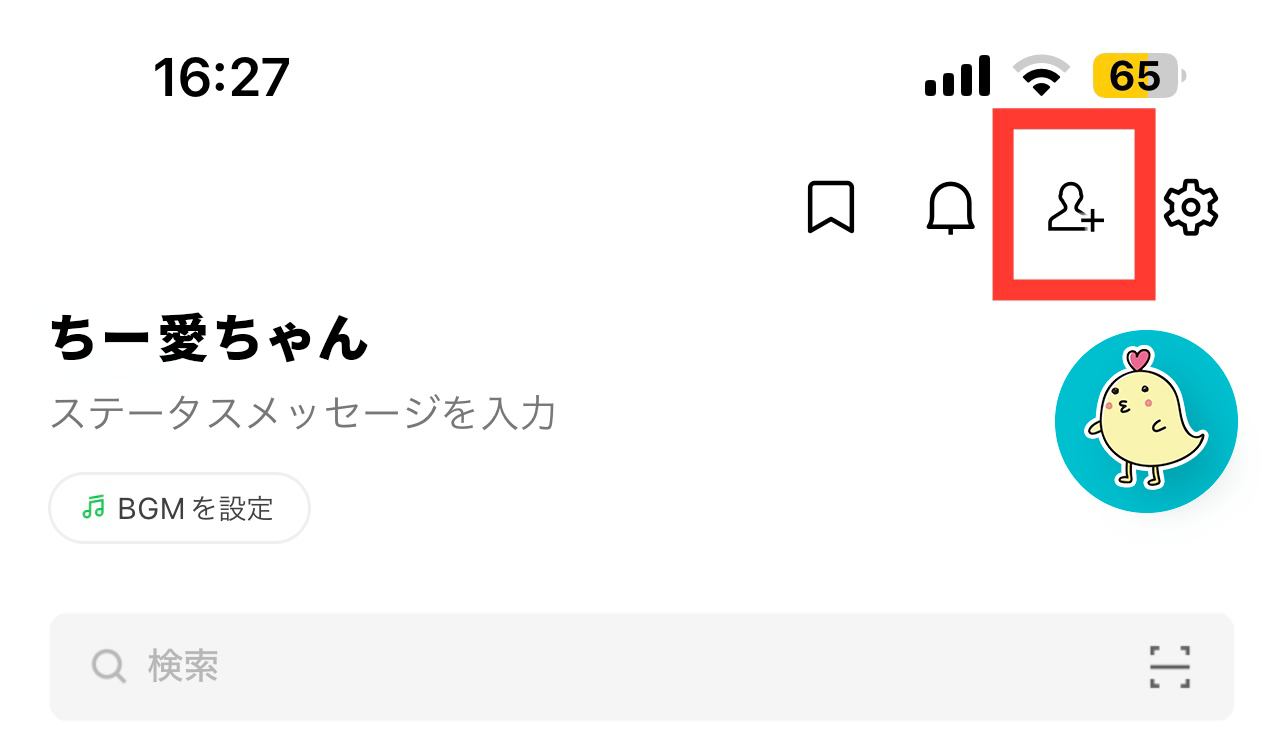 LINEを開いて右上にある「友だち追加マーク」をタップ
