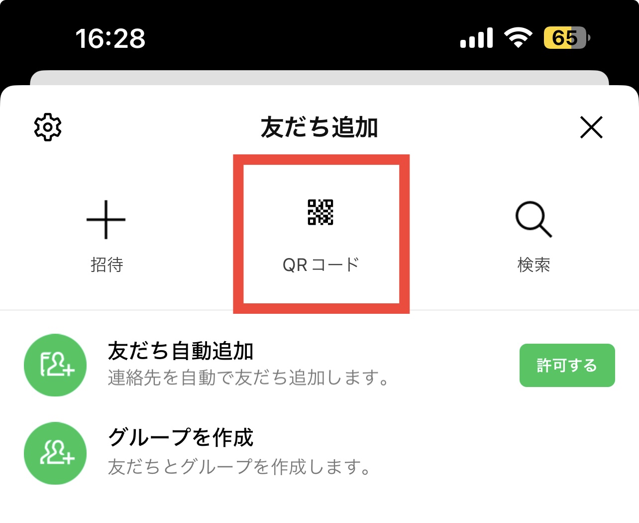 「QRコード」をタップ